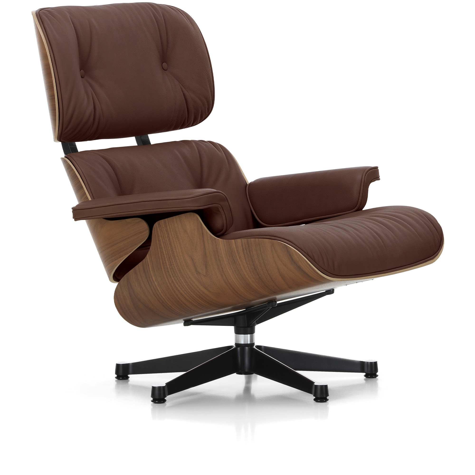 Vitra - Eames Lounge Chair Natural Walnut Leather Premium Marron 69 Polished Aluminium/Deep Black - Fåtöljer - Charles & Ray Eames - Läder/Metall/Trä