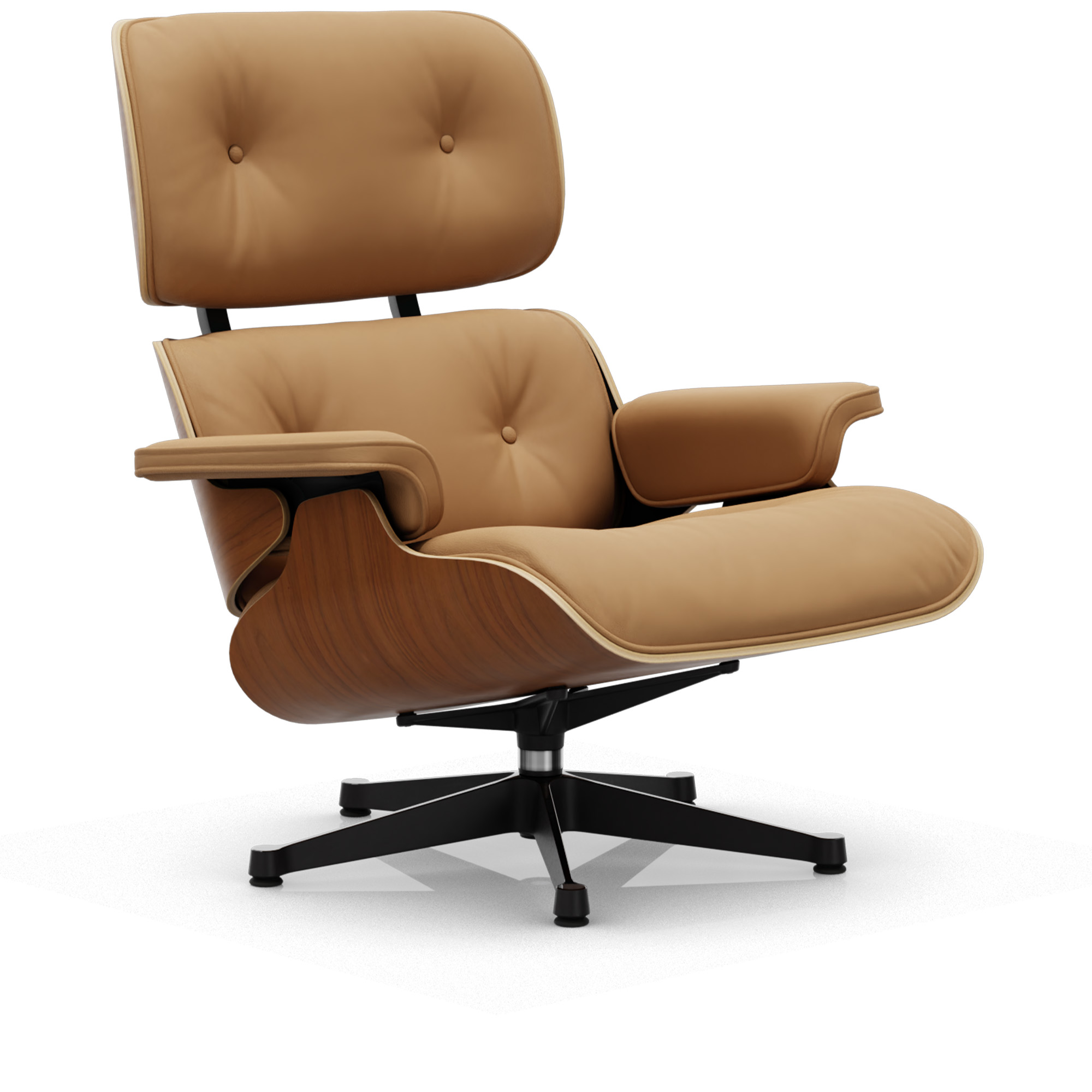 Vitra - Eames Lounge Chair Natural Walnut Leather Premium Ochre 62 Polished Aluminium/Deep Black - Fåtöljer - Charles & Ray Eames - Läder/Metall/Trä