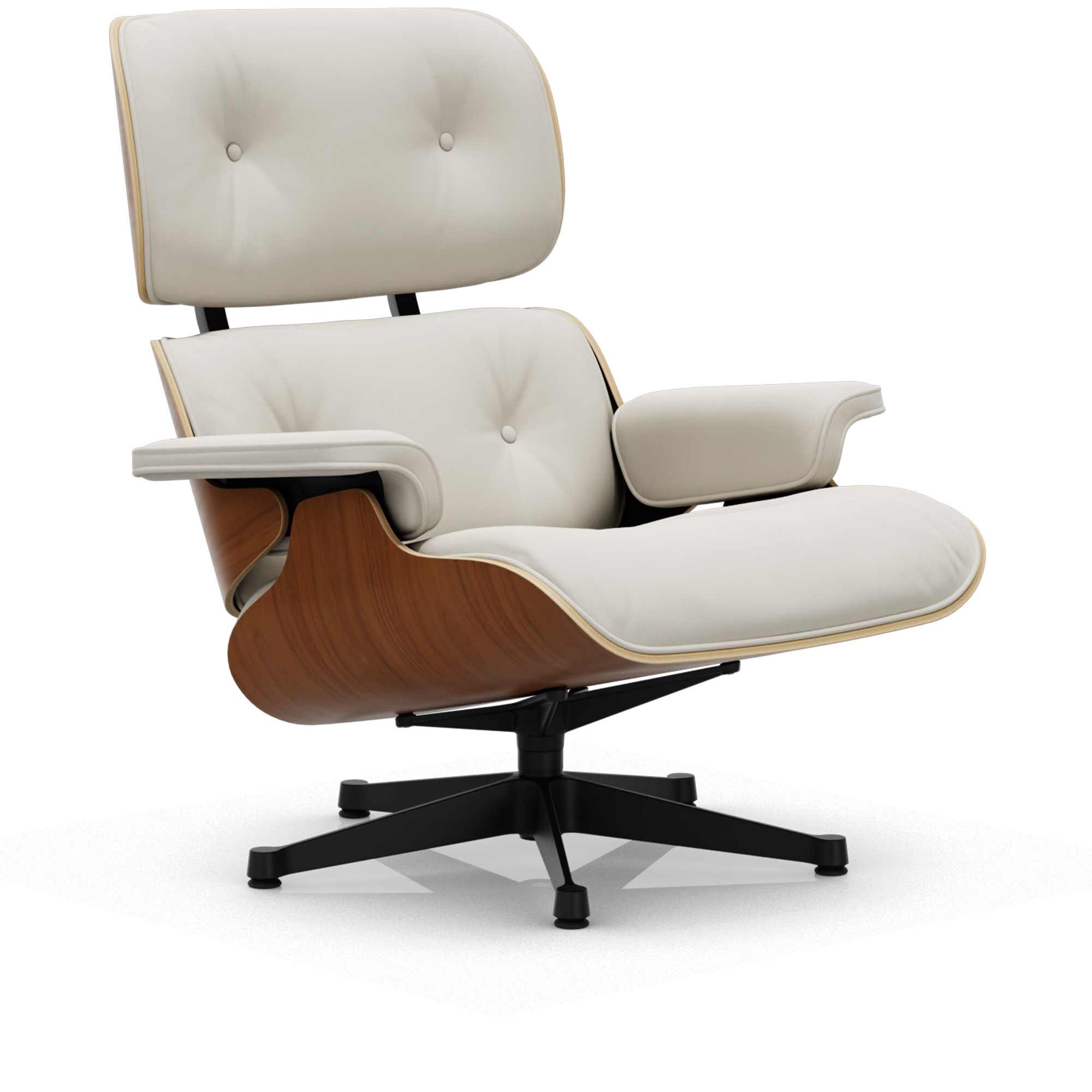 Vitra - Eames Lounge Chair Natural Walnut Leather Premium Snow 72 Deep Black - Fåtöljer - Charles & Ray Eames - Läder/Metall/Trä