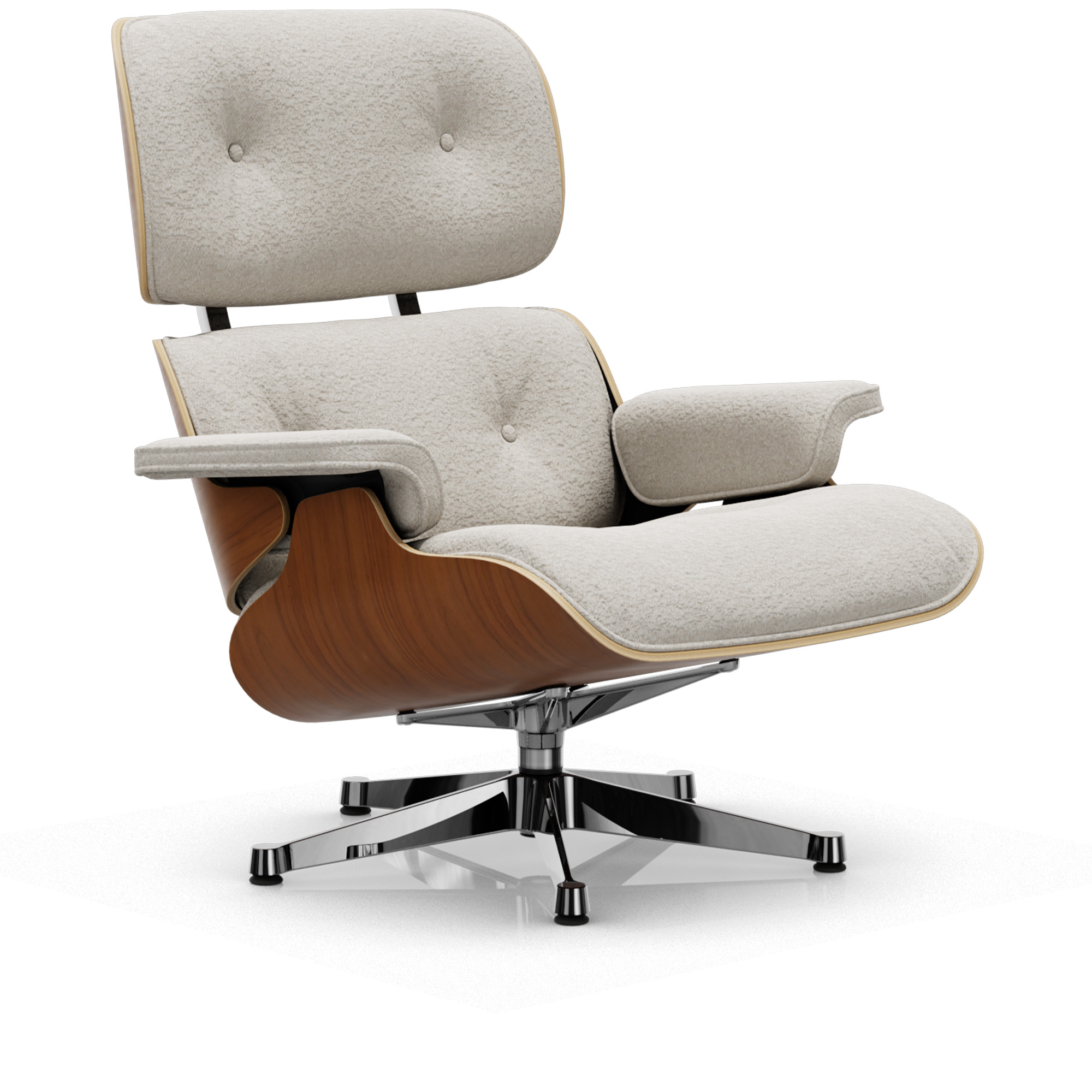 Vitra - Eames Lounge Chair Natural Walnut Nubia Ivory Pearl 01 Polished Aluminium - Fåtöljer - Charles & Ray Eames - Läder/Metall/Trä