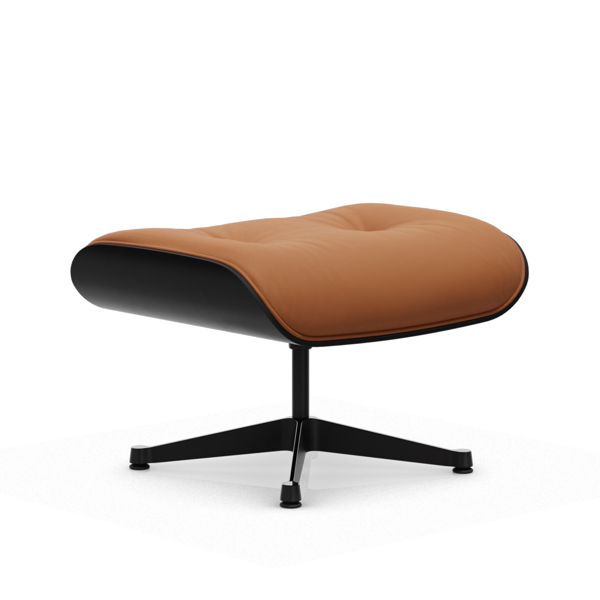 Vitra - Eames Lounge Ottoman Black Chestnut Leather Premium Cognac 97 Polished Aluminium/Deep Black - Fotpallar - Charles & Ray Eames - Läder/Metall/Trä