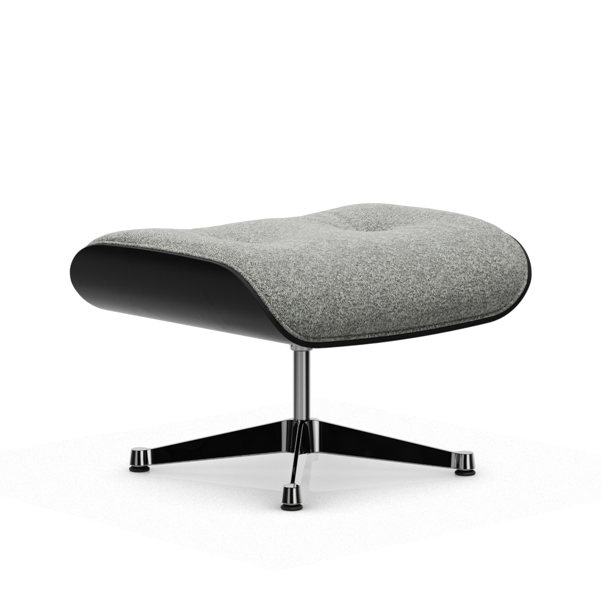 Vitra - Eames Lounge Ottoman Black Chestnut Nubia Salt’N Pepper 10 Polished Aluminium - Fotpallar - Charles & Ray Eames - Läder/Metall/Trä