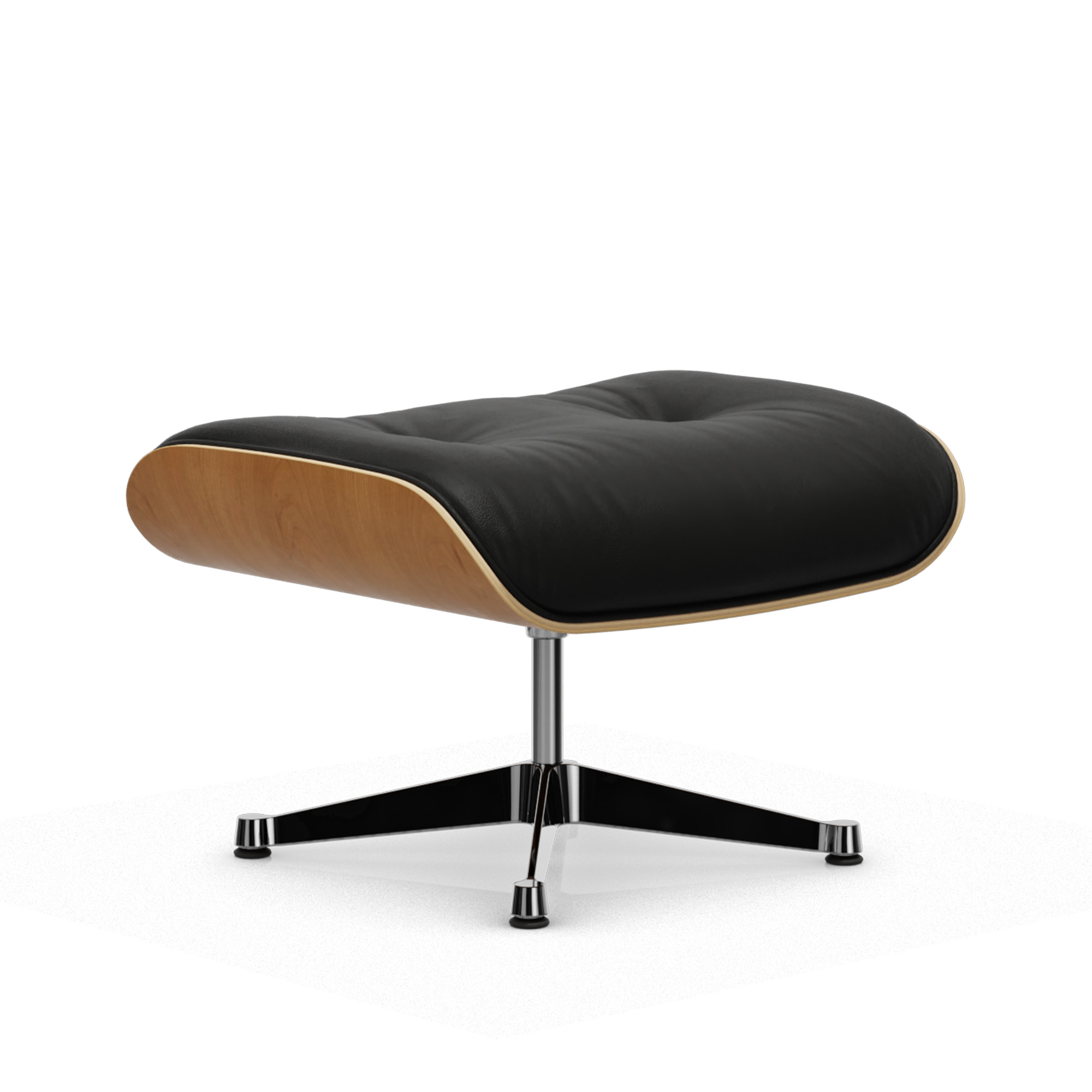 Vitra - Eames Lounge Ottoman Cherry Leather Premium Nero 66 Polished Aluminium/Deep Black - Fotpallar - Charles & Ray Eames - Läder/Metall/Trä