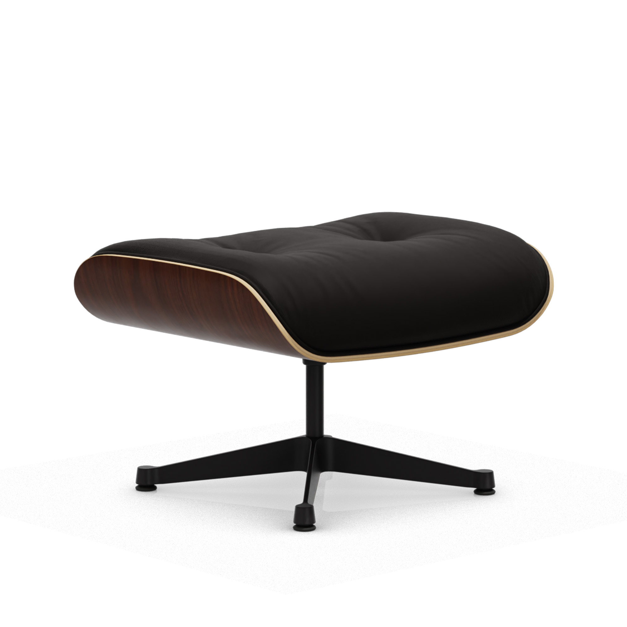 Vitra - Eames Lounge Ottoman Dark Walnut Leather Premium Chocolate 68 Deep Black - Fotpallar - Charles & Ray Eames - Läder/Metall/Trä