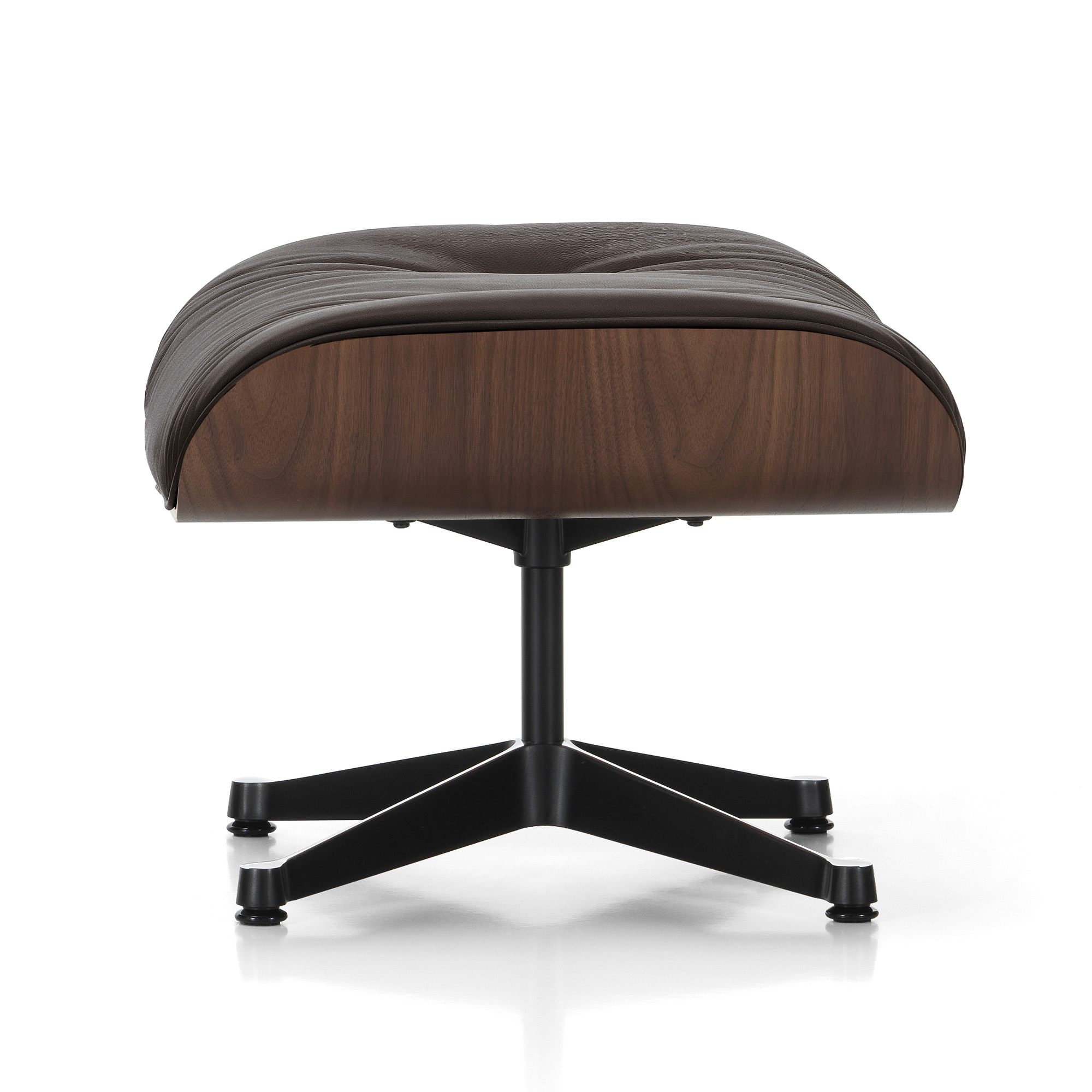 Vitra - Eames Lounge Ottoman Dark Walnut Leather Premium Chocolate 68 Polished Aluminium/Deep Black - Fotpallar - Charles & Ray Eames - Läder/Metall/Trä