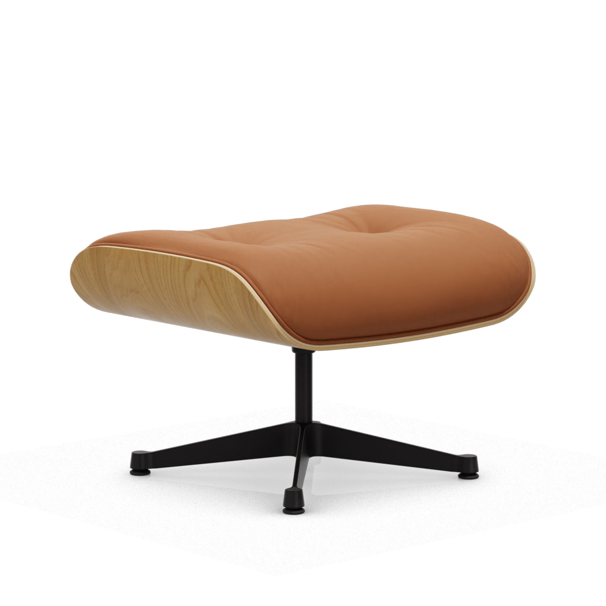 Vitra - Eames Lounge Ottoman Natural Chestnut Leather Premium Cognac 97 Deep Black - Fotpallar - Charles & Ray Eames - Läder/Metall/Trä