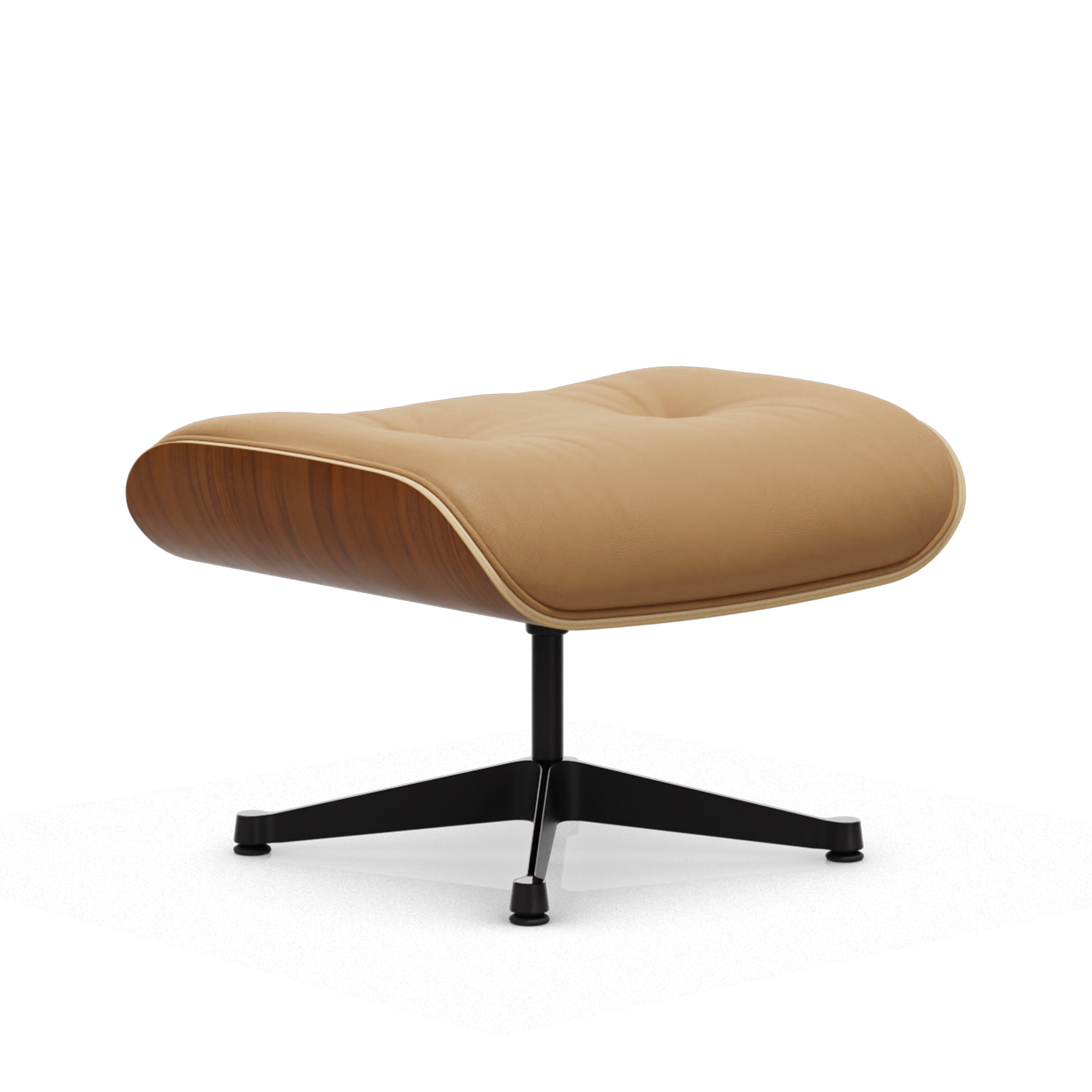 Vitra - Eames Lounge Ottoman Natural Walnut Leather Premium Ochre 62 Polished Aluminium/Deep Black - Fotpallar - Charles & Ray Eames - Läder/Metall/Trä