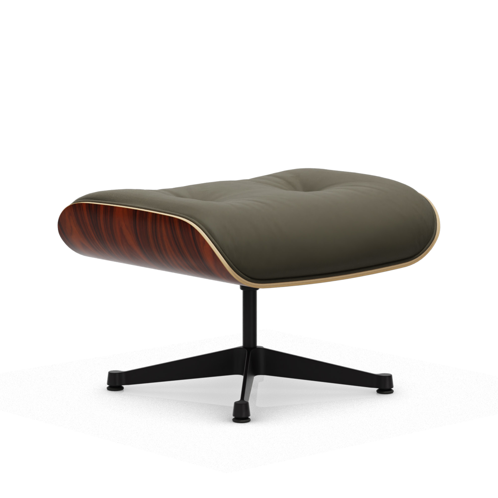 Vitra - Eames Lounge Ottoman Santos Palisander Leather Premium Khaki 58 Deep Black - Fotpallar - Charles & Ray Eames - Läder/Metall/Trä