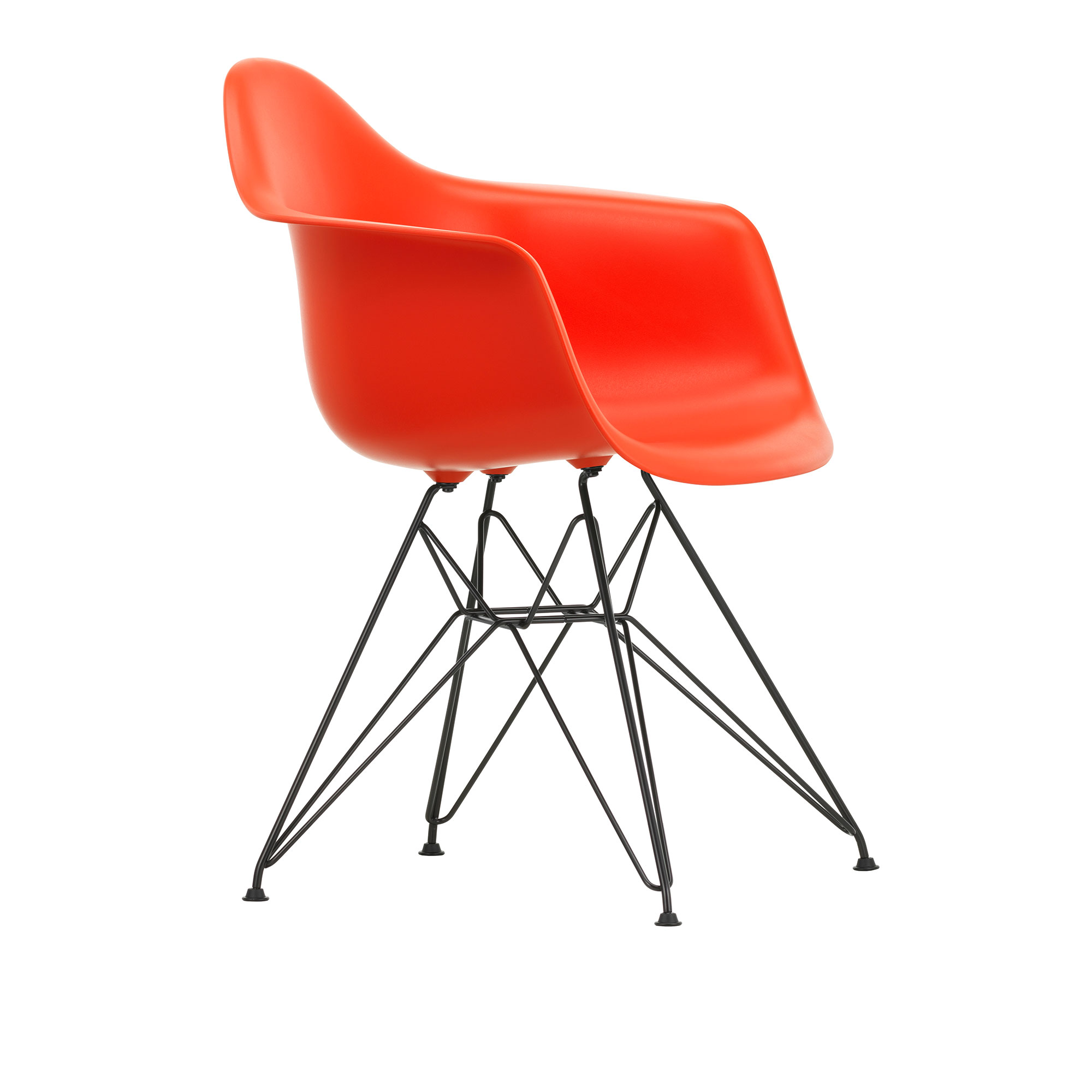 Eames RE Plastic Armchair DAR är en matstol formgiven år 1950 av Charles och Ray Eames för varumärket Vitra. Stolen har ett säte i plast som monterats på en bas av fyra stolsben tillverkade av stål. Paret Eames multifunktionella Plastic Chairs introducerades för första gången på designtävlingen ""Low Cost Furniture Design"" som hölls på Museum of Modern Art i New York år 1950. Charles och Ray presenterade organiskt utformade stolsitsar av plast som kombinerades med olika baser vilket gav dessa sittmöbler en uppsjö olika funktioner och kunde därmed tjäna olika syften. Idag tillverkas de legendariska Eames RE Plastic Chairs av Vitra som reviderat design och materialval för ännu högre sittkomfort och kvalitét. DAR-stolen (Dining Height Armchair Rod Base) kombinerar lätta och eleganta former med en stadig och graciös bas som på grund av sitt utseende kommit att kallas för Eiffeltornet. Sedan 2024 tillverkas skalen på alla Eames Plastic Chair i hundra procent återvunnen plast. Den återvunna plasten härstammar från insamlande av plastförpackningar från tyska hushåll, i insamlingsprogrammet ”Gula påsen”, och är av premiumkvalitet. Att använda återvunnet råmaterial istället för petroleumbaserad primärplast innebär att de klimatskadliga utsläppen minskas rejält, precis som primärenergiförbrukningen. Skalet är naturligtvis återvinningsbart i slutet av sin produktlivslängd.