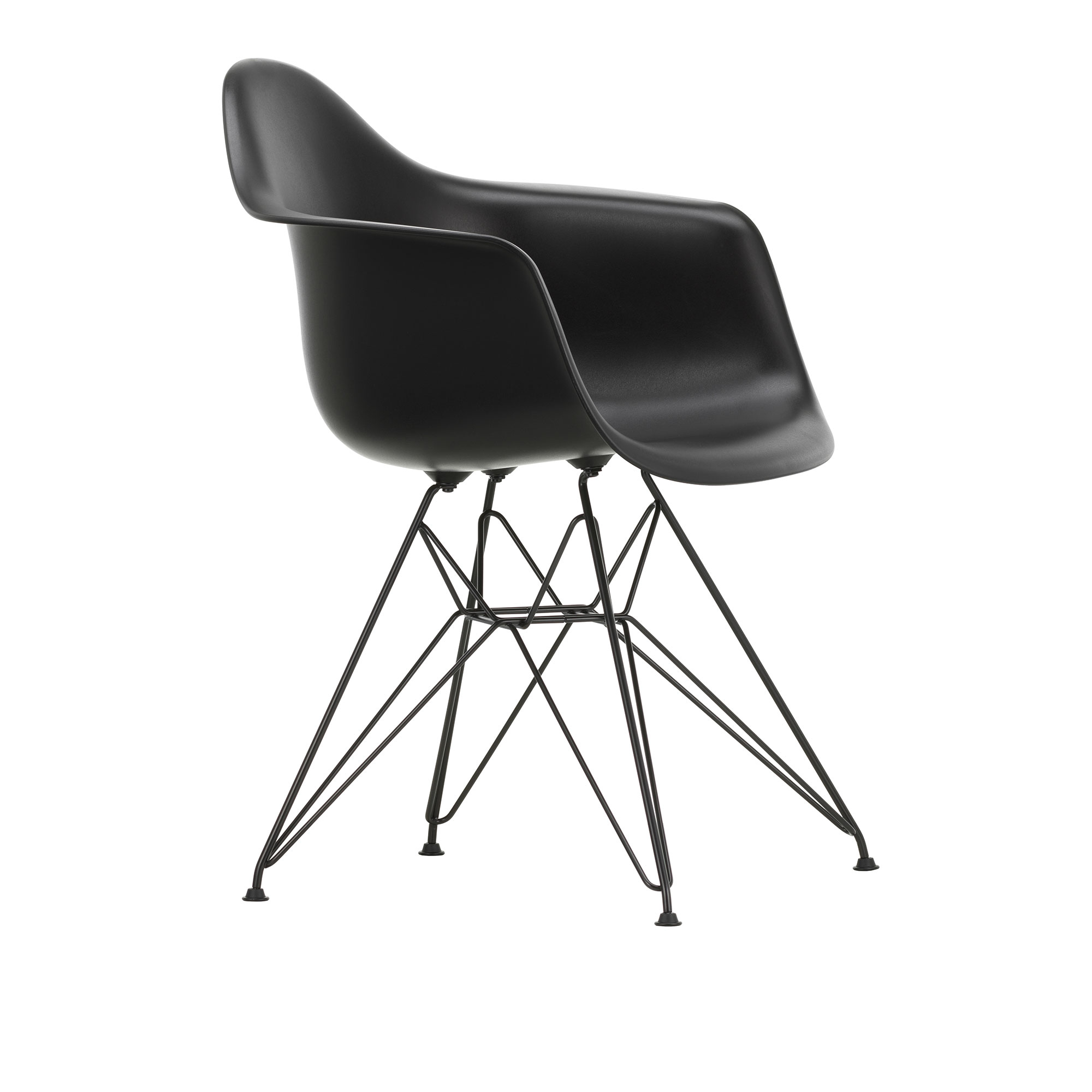 Eames RE Plastic Armchair DAR är en matstol formgiven år 1950 av Charles och Ray Eames för varumärket Vitra. Stolen har ett säte i plast som monterats på en bas av fyra stolsben tillverkade av stål. Paret Eames multifunktionella Plastic Chairs introducerades för första gången på designtävlingen ""Low Cost Furniture Design"" som hölls på Museum of Modern Art i New York år 1950. Charles och Ray presenterade organiskt utformade stolsitsar av plast som kombinerades med olika baser vilket gav dessa sittmöbler en uppsjö olika funktioner och kunde därmed tjäna olika syften. Idag tillverkas de legendariska Eames RE Plastic Chairs av Vitra som reviderat design och materialval för ännu högre sittkomfort och kvalitét. DAR-stolen (Dining Height Armchair Rod Base) kombinerar lätta och eleganta former med en stadig och graciös bas som på grund av sitt utseende kommit att kallas för Eiffeltornet. Sedan 2024 tillverkas skalen på alla Eames Plastic Chair i hundra procent återvunnen plast. Den återvunna plasten härstammar från insamlande av plastförpackningar från tyska hushåll, i insamlingsprogrammet ”Gula påsen”, och är av premiumkvalitet. Att använda återvunnet råmaterial istället för petroleumbaserad primärplast innebär att de klimatskadliga utsläppen minskas rejält, precis som primärenergiförbrukningen. Skalet är naturligtvis återvinningsbart i slutet av sin produktlivslängd.