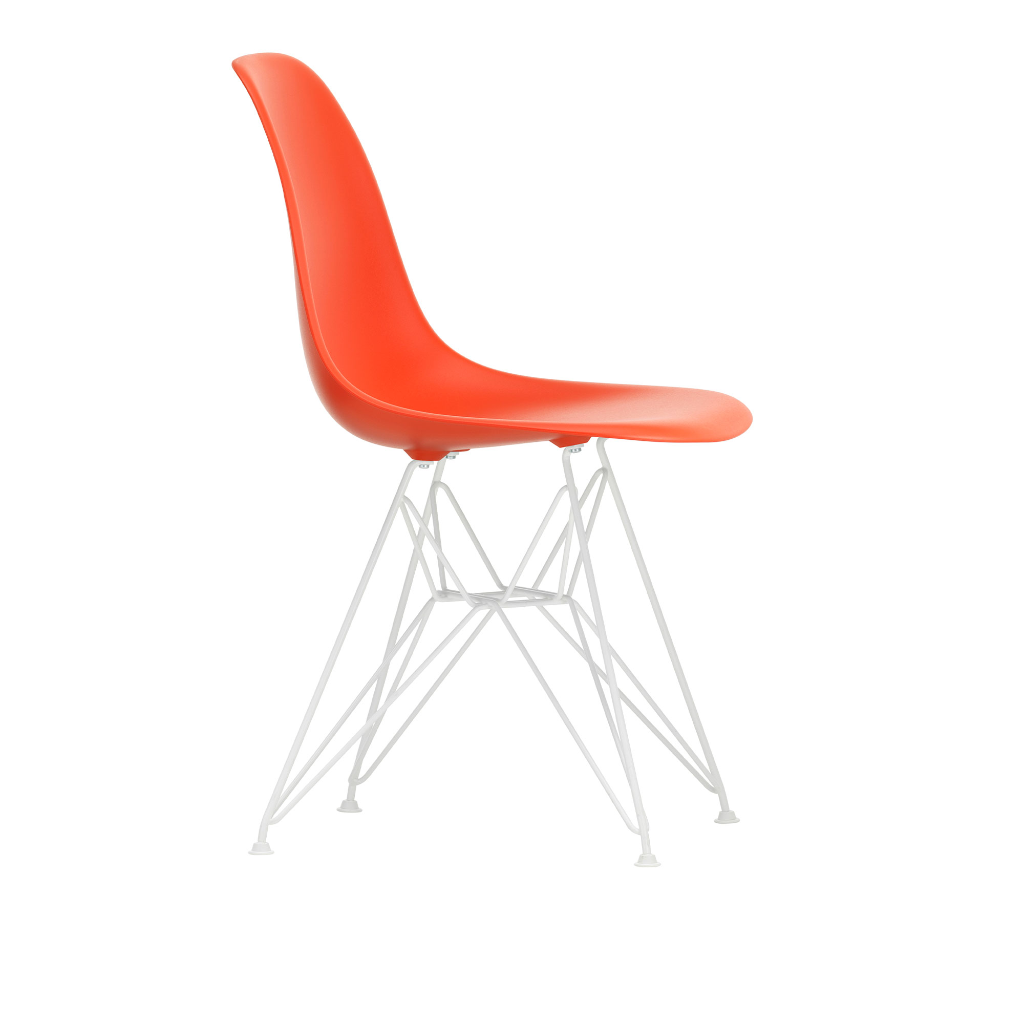 Eames RE Plastic Chair DSR är en ikonisk matstol skapad 1950 av designparet Charles och Ray Eames. Sitsen är fäst vid en unik stålkonstruktion känd som Eiffeltornsbasen, vilken har fyra ben. Sitsen finns tillgänglig i en mängd olika färgval, och benen kan fås i antingen krom eller svart. Charles och Ray Eames introducerade sina mångsidiga Plastic Chairs under Low Cost Furniture Design tävlingen, som ägde rum på Museum of Modern Art i New York under 1950. De avslöjade sina plaststolar med organisk design, som kunde kombineras med olika baser för att skapa stolar med många användningsområden och funktioner. Numera produceras de berömda Eames RE Plastic Chairs av företaget Vitra, som har uppdaterat designen och materialen för att förbättra komforten och kvaliteten. Vitra introducerade tio nya kulörer för Eames RE Plastic Chair år 2019. Sedan 2024 tillverkas skalen på alla Eames Plastic Chair i hundra procent återvunnen plast. Den återvunna plasten härstammar från insamlande av plastförpackningar från tyska hushåll, i insamlingsprogrammet ”Gula påsen”, och är av premiumkvalitet. Att använda återvunnet råmaterial istället för petroleumbaserad primärplast innebär att de klimatskadliga utsläppen minskas rejält, precis som primärenergiförbrukningen. Skalet är naturligtvis återvinningsbart i slutet av sin produktlivslängd.