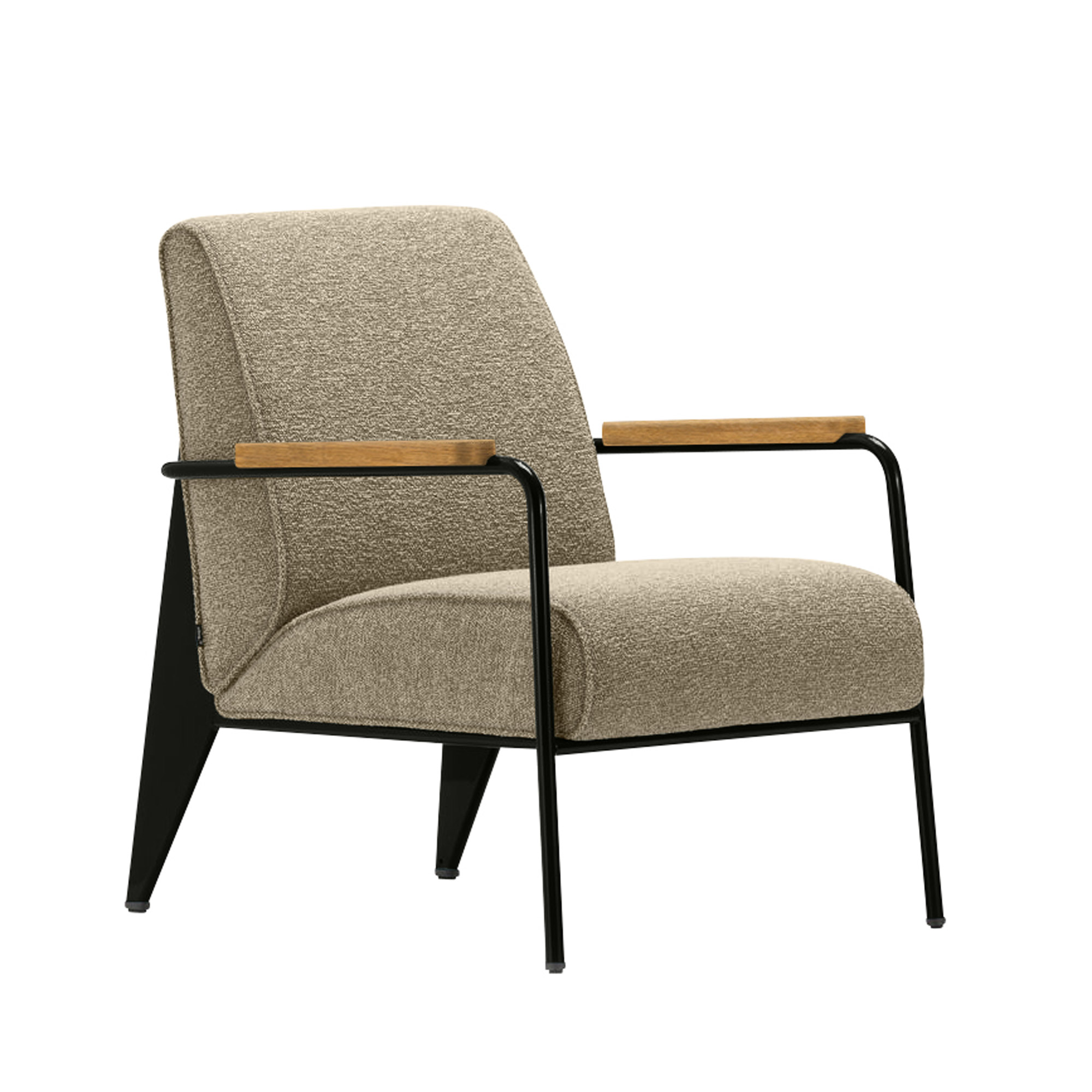 Vitra - Fauteuil de Salon, Base Deep Black, Natural Oak, Fabric Cat. F100 Nubia Col. 04 Bamboo/Terra - Fåtöljer - Jean Prouvé - Beige - Metall/Trä/Skum