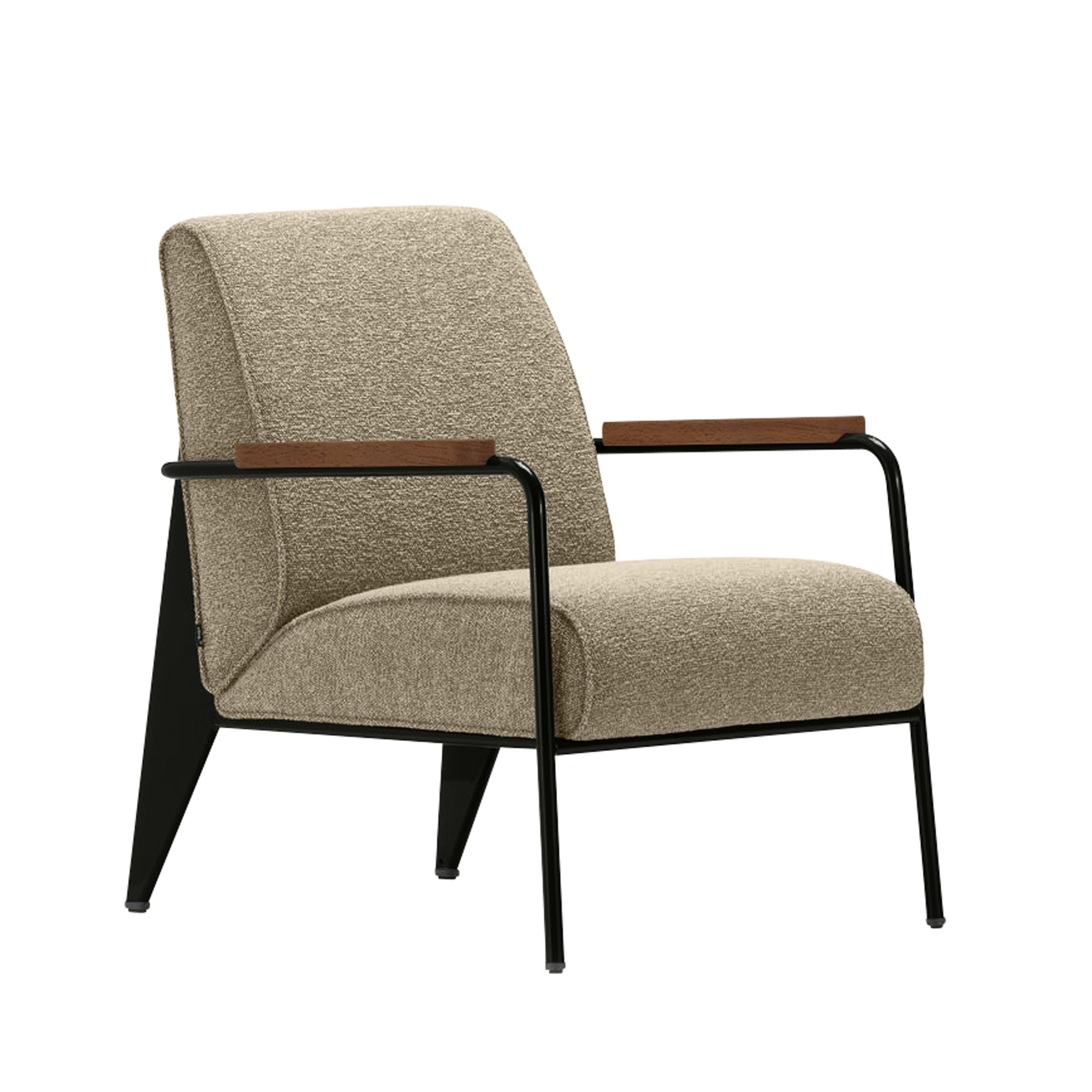 Vitra - Fauteuil de Salon, Base Deep Black, Walnut, Fabric Cat. F100 Nubia Col. 04 Bamboo/Terra - Fåtöljer - Jean Prouvé - Beige - Metall/Trä/Skum