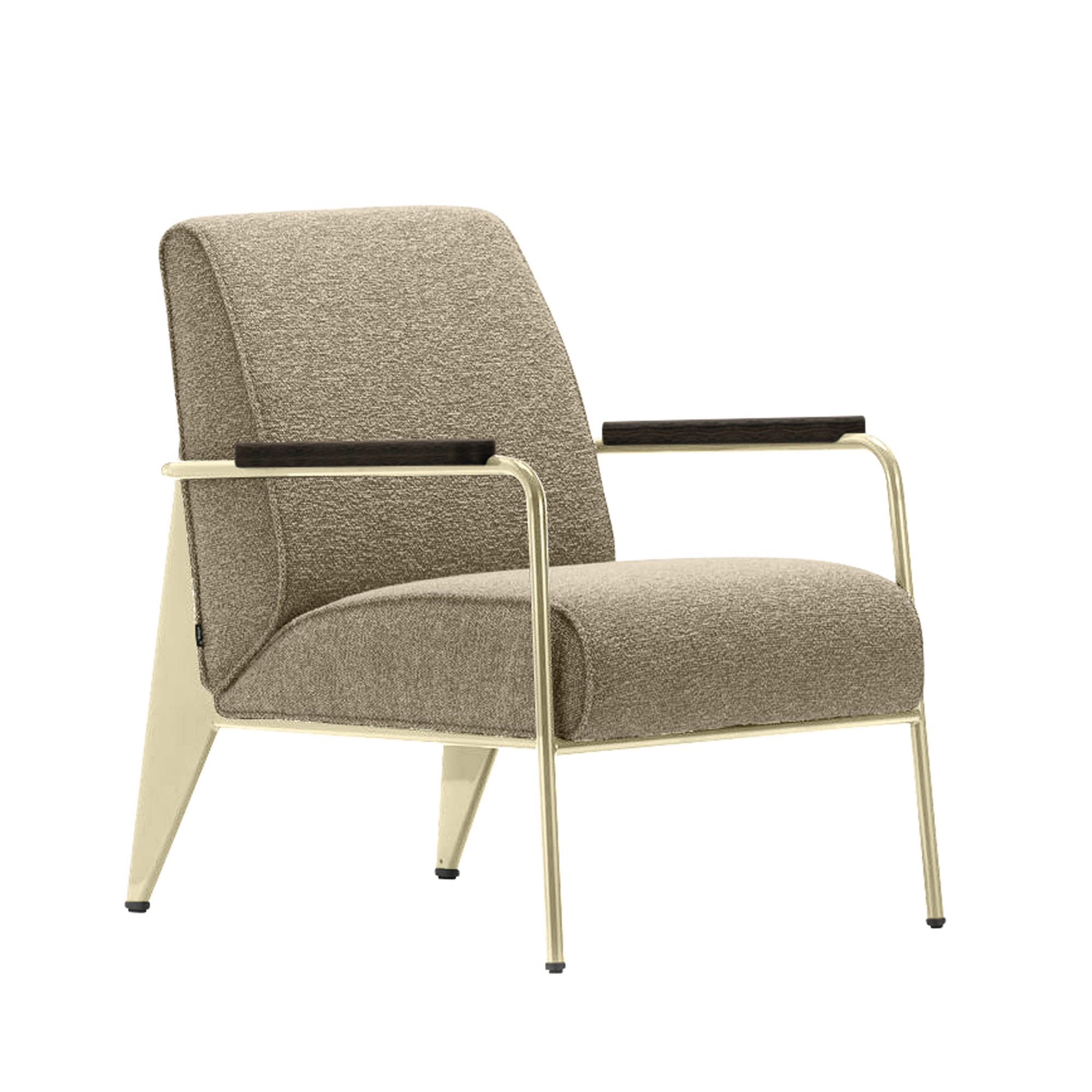 Vitra - Fauteuil de Salon, Base Ecru, Dark Oak, Fabric Cat. F100 Nubia Col. 04 Bamboo/Terra - Fåtöljer - Jean Prouvé - Beige - Metall/Trä/Skum