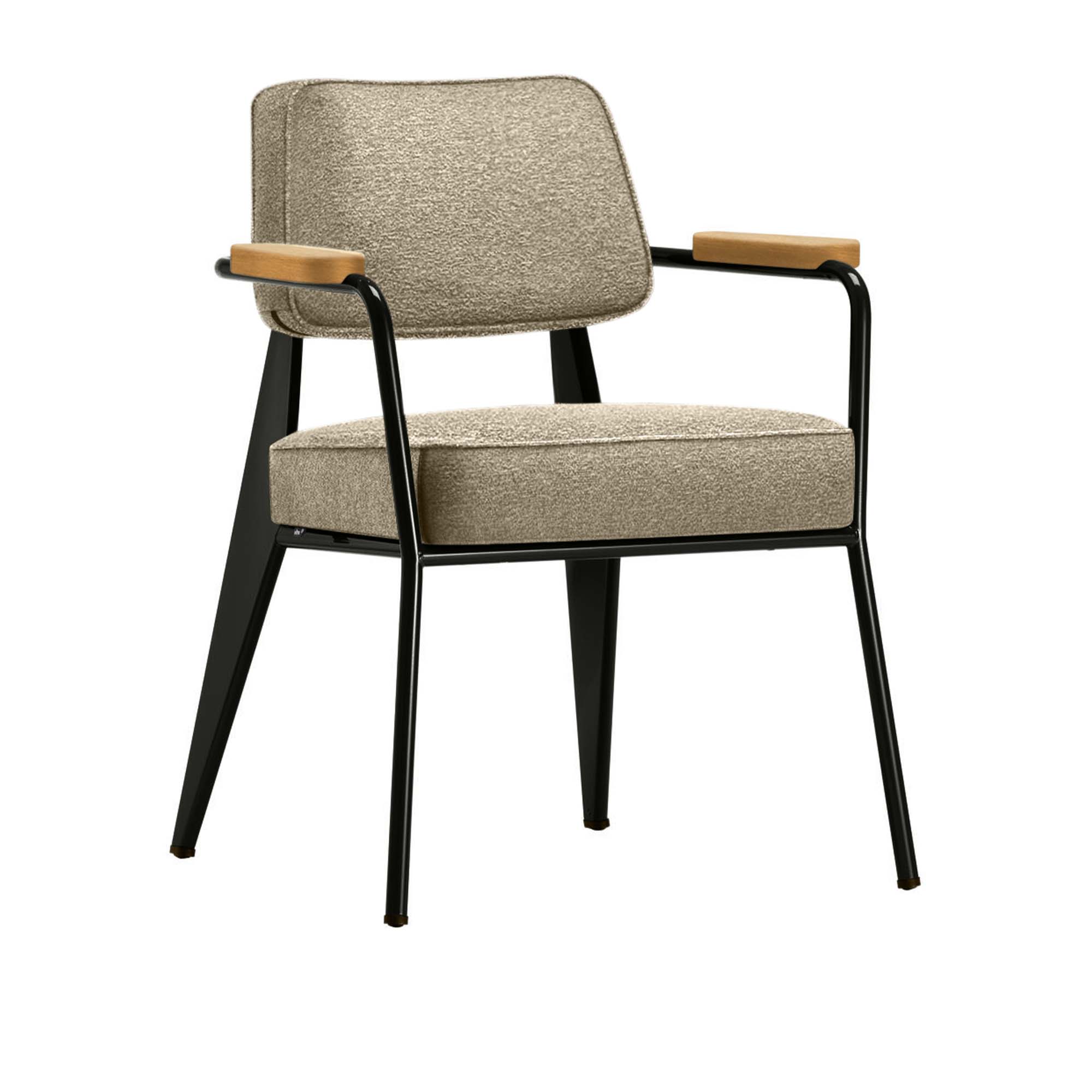 Vitra - Fauteuil Direction, Natural Oak, Base Deep Black Fabric Cat. F100 Nubia Col. 04 Bamboo/Terra - Matstolar - Jean Prouvé - Beige - Metall/Trä/Textilmaterial/Skum