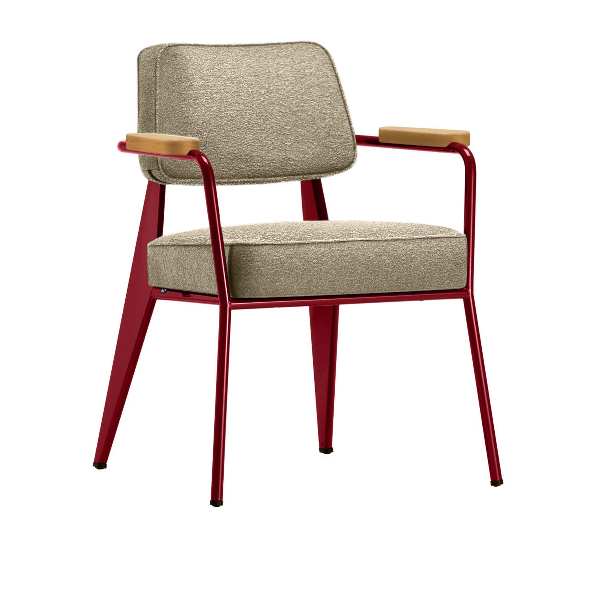 Vitra - Fauteuil Direction, Natural Oak, Base Japanese Red Fabric Cat. F100 Nubia Col. 04 Bamboo/Terra - Matstolar - Jean Prouvé - Beige - Metall/Trä/Textilmaterial/Skum