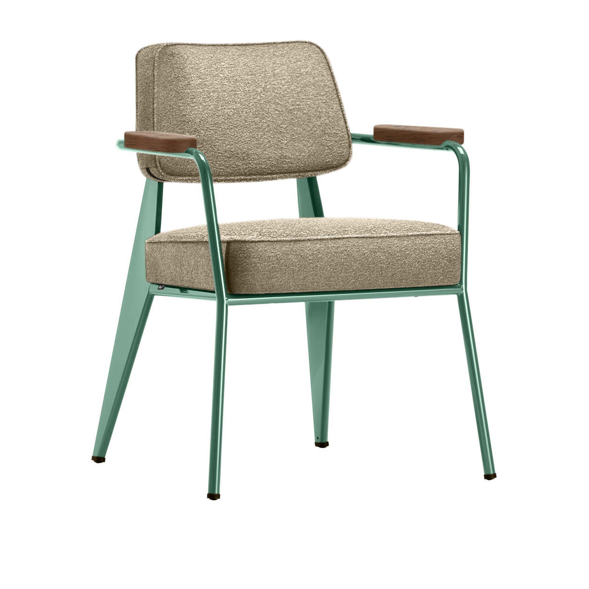 Vitra - Fauteuil Direction, Walnut, Prouvé Blé Vert Fabric Cat. F100 Nubia Col. 04 Bamboo/Terra - Matstolar - Jean Prouvé - Beige - Metall/Trä/Textilmaterial/Skum