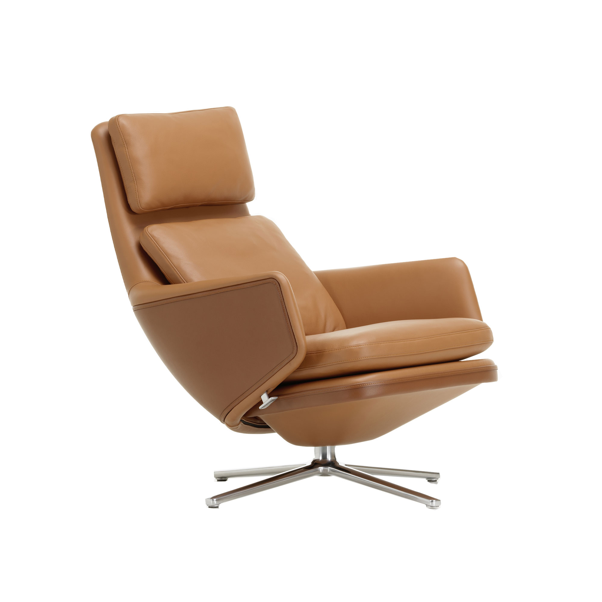 Vitra - Grand Relax Low, Aluminium Polished Base, Back/Seat Leather Premium Cognac, Felt Glides For Hard Floor - Fåtöljer - Antonio Citterio - Brun - Dun/Läder/Metall/Skum