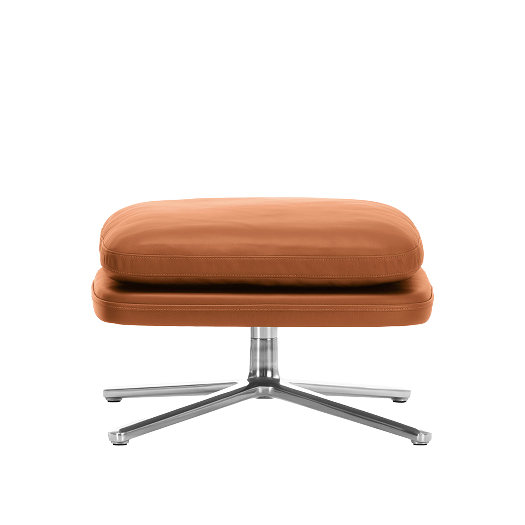 Vitra - Grand Relax Ottoman Low, Aluminium Polished Base, Back/Seat Leather Premium Cognac, Felt Glides For Hard Floor - Sittpuffar - Antonio Citterio - Brun - Dun/MDF/Läder/Metall/Syntetiskt/Skum