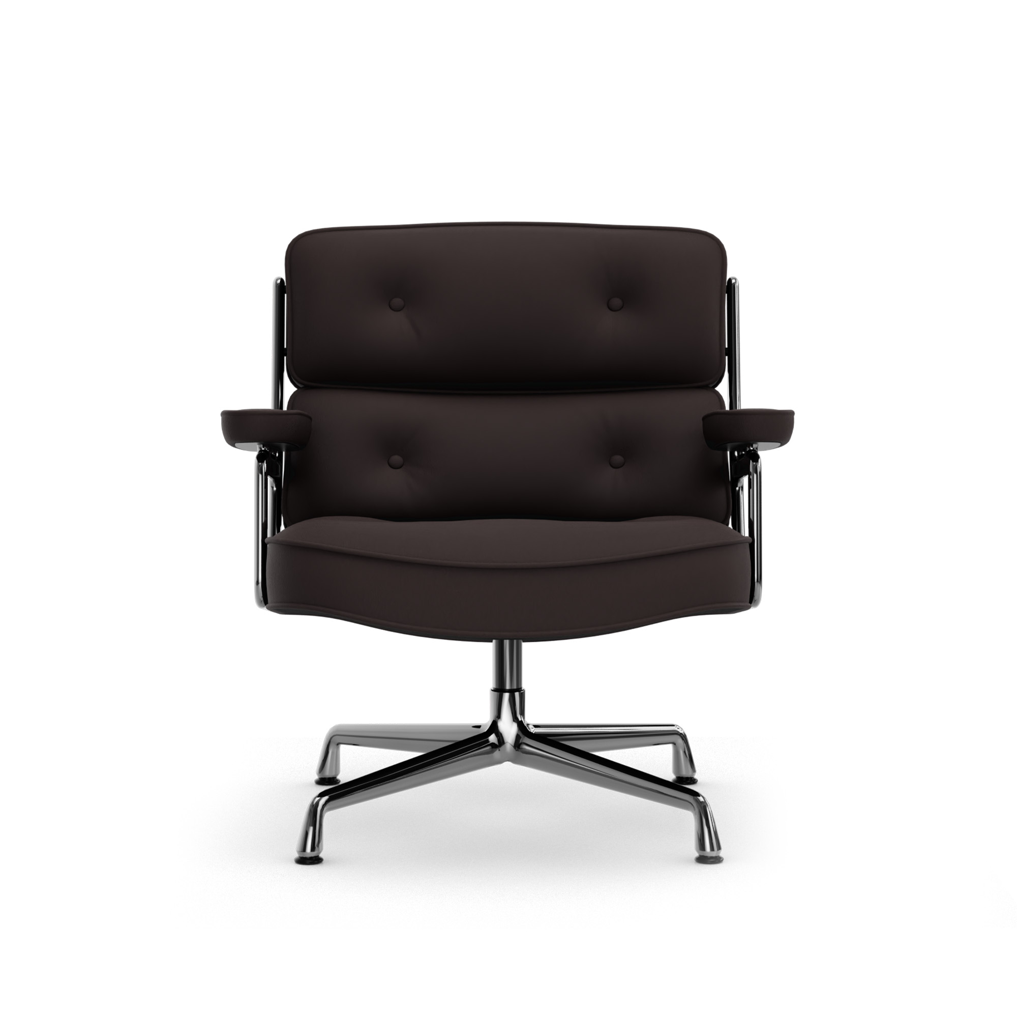 Lobbyfåtöljen ES 105, en ikonisk skapelse av designparet Charles & Ray Eames från 1960, tillverkas av Vitra. Dess unika komfort kommer från de tre sammanlänkade kuddarna som vilar på en elegant aluminiumstomme. Ursprungligen framtagen för att pryda lobbyn i Time Life Building i New York, har denna fåtölj vunnit internationellt erkännande som en designklassiker. Modellen ES 105 kännetecknas av sin låga och breda form, komplett med möbeltassar, medan varianten ES 104 erbjuder en svängbar funktion och är utrustad med hjul. Det finns ett urval av högkvalitativa läderfinishar att välja mellan för denna lyxiga sittmöbel.