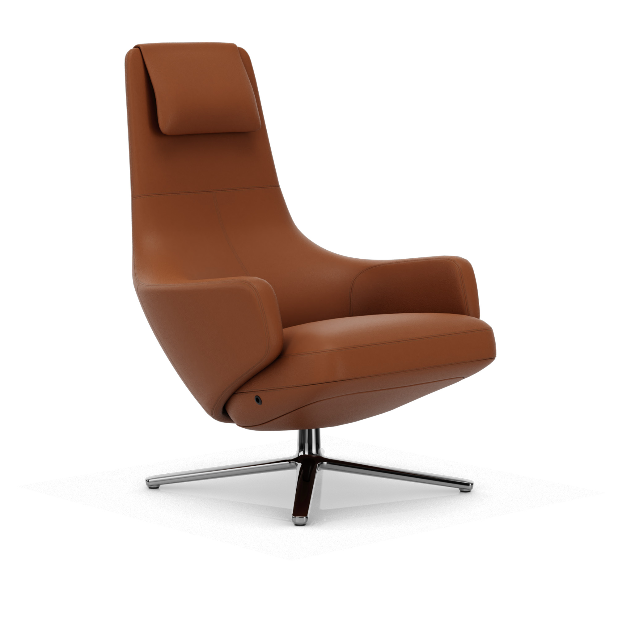 Vitra - Repos Low, Aluminium Polished Base, Back/Seat Leather Premium L40 Cognac - Fåtöljer - Antonio Citterio - Brun - Dun/Läder/Metall/Skum/Plast