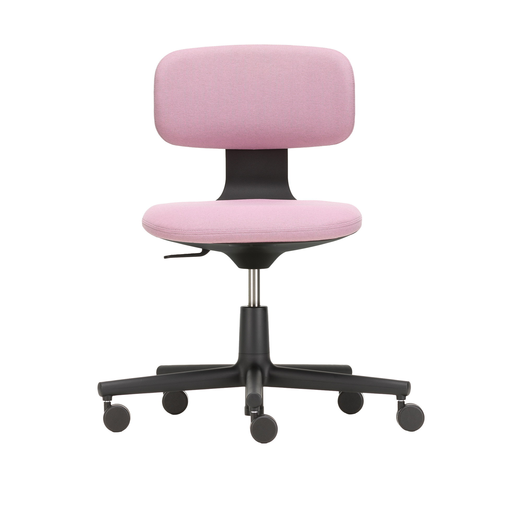 Vitra - Rookie Studio Chair, Fabric Upholstery, Deep Black Base, Plano 15 Pink/Sierra Grey, Castors Soft, Braked For Hard Floor - Kontorsstolar - Konstantin Grcic - Rosa