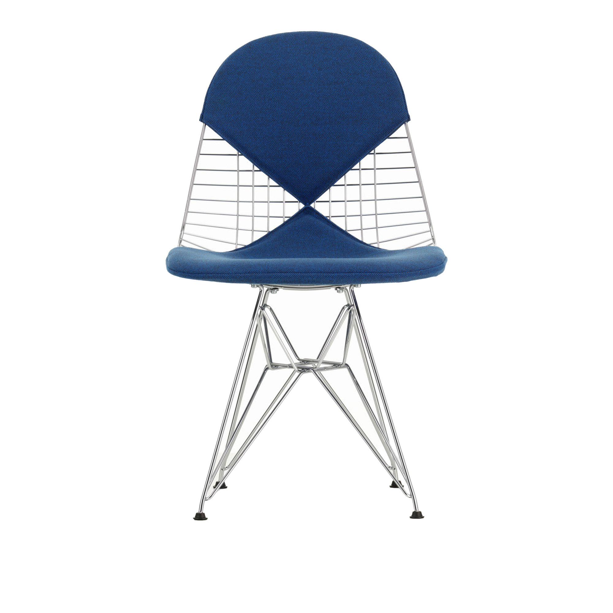 Vitra - Wire Chair DKR-2, Förkromat, Tyg: Kat. F60 - Hopsak - 82 - Matstolar - Charles & Ray Eames - Blå - Metall