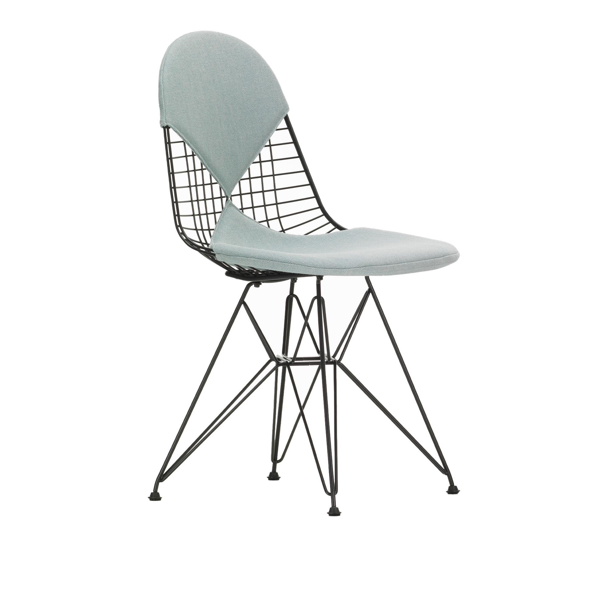 Vitra - Wire Chair DKR-2, Pulverlackerat - Basic Dark, Tyg: Kat. F60 - Hopsak - 81 - Matstolar - Charles & Ray Eames - Blå - Metall
