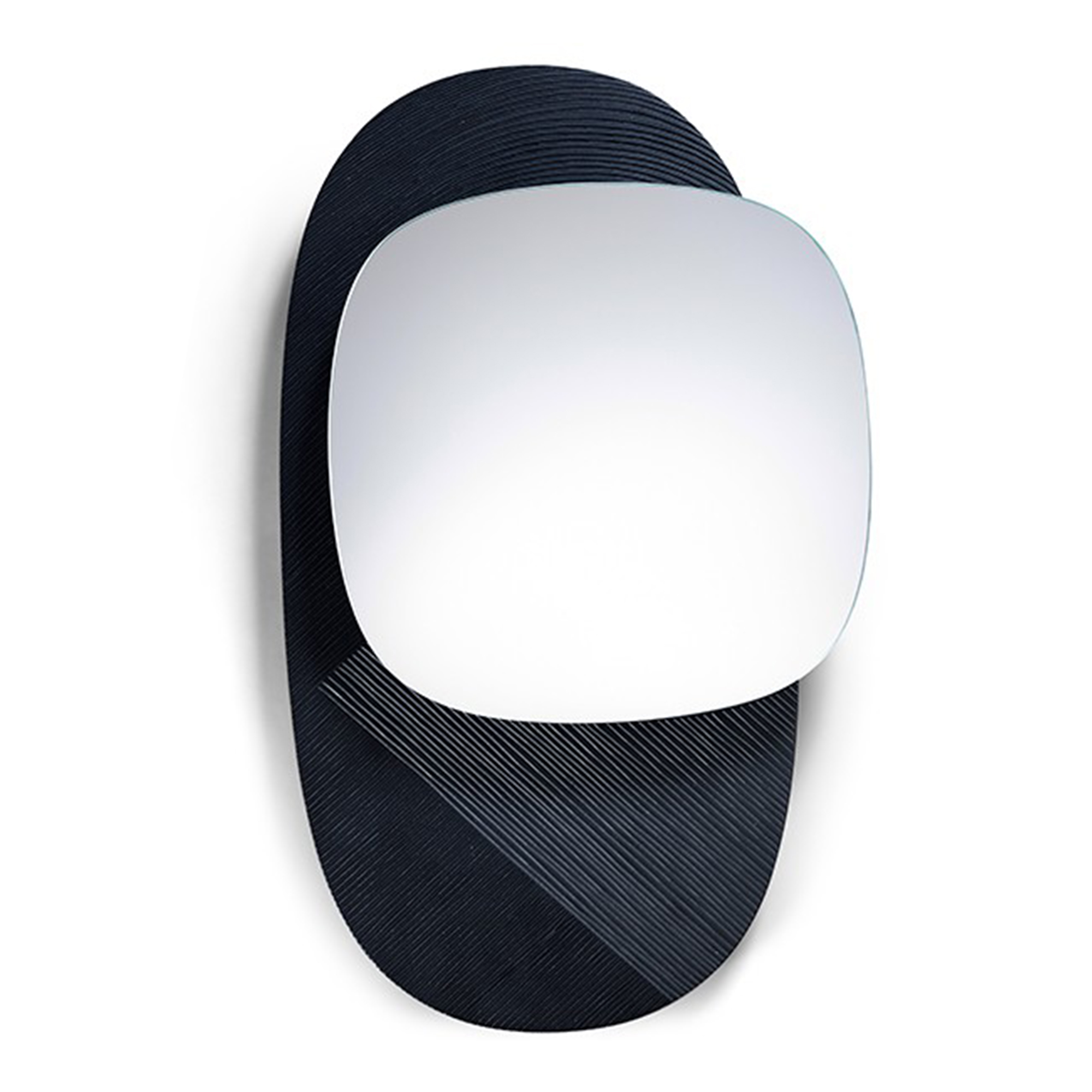 Eclipse Wall Mirror är en serie vackra speglar från Zanat, formgivna av Monica Förster. Spegeln är fäst på en rundad bottenplatta som i sin tur skuggar en större bottenplatta i svartmålad lönn. Ytan på bottenplattorna är handsnidade efter abstrakta ritningar av Monica Förster. Speglarna finns i tre olika storlekar och former som alla fungerar utmärkt att kombinera ihop med varandra för att skapa olika konstnärliga installationer på väggen.