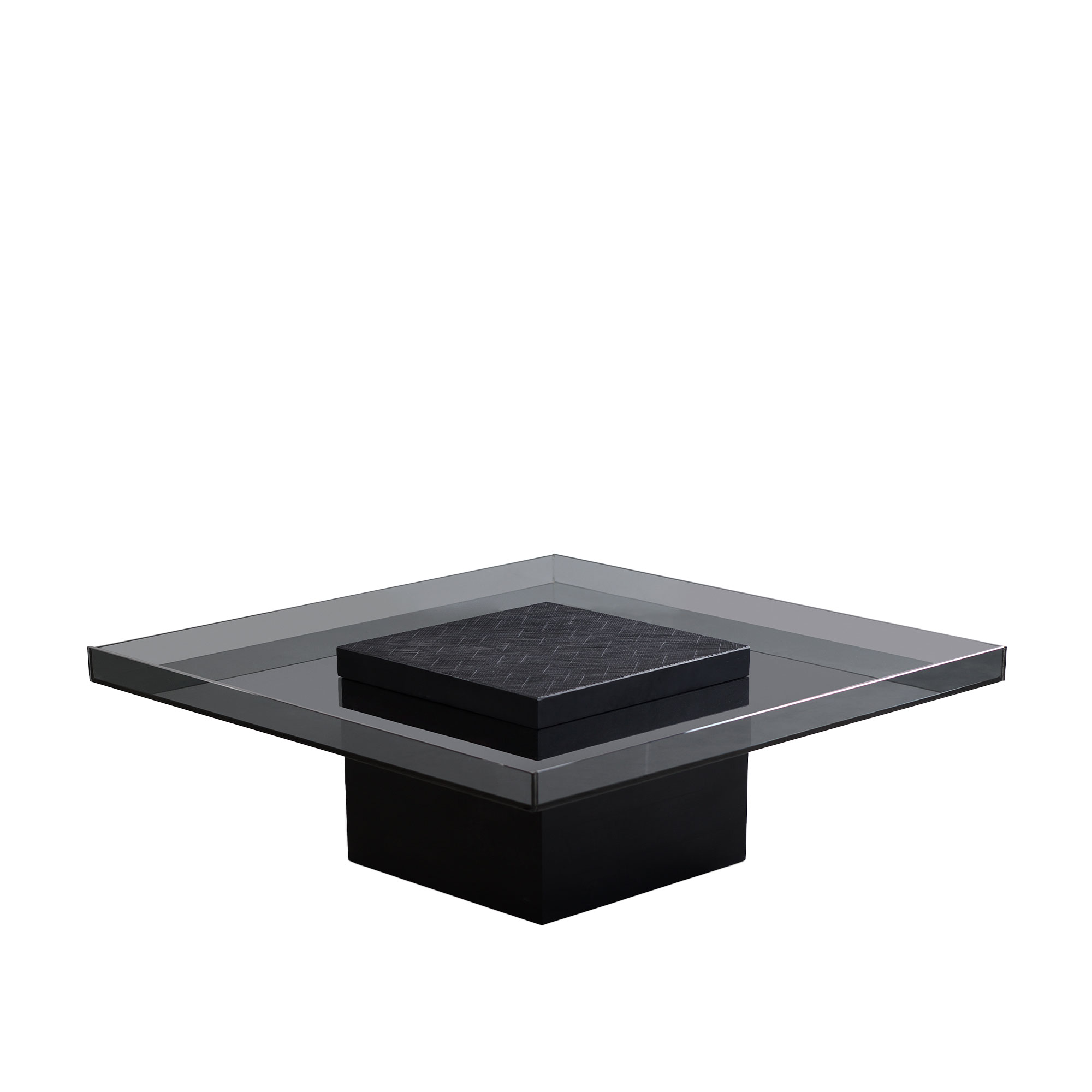 Koba Coffee Table Square är en modern och elegant möbel. Den har designats av Jean-Marie Massaud för Zanat, som är ett bosniskt varumärke som gjort sig kända för sitt gedigna hantverk i trä och traditionella sniderier. Bordet har en skulptural bas i massivt trä som elegant fortsätter genom den övre skivan i rökt glas. Detta skapar en intressant ram med en struktur som liknar bränt trä. Basen innehåller också två nivåer av förvaringsutrymme - den övre går lätt att komma åt genom att lyfta toppen och den nedre delen är mer diskret och åtkomlig med instruktioner från Zanat.