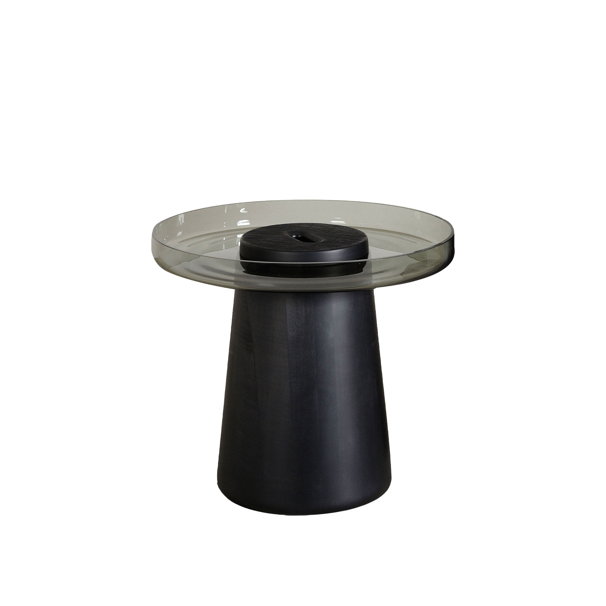 Koba Coffee Table Round är ett skulpturellt sidobord från Zanat, formgivet av Jean-Marie Massaud. Borden har en handskuren bas i massiv lönn och en integrerad bordsskiva tillverkad i munblåst glas av Poshinger, ett 450 år gammalt glasblåsande familjeföretag från Tyskland, som precis som Zanat, använder sig av en produktionsteknik som är inskriven på UNESCO: s världsarvslista. Den handskurna toppen i trä avslöjar en rundad rektangulär öppning i mitten som inte bara är dekorativ utan också gör det lätt att kunna förflytta borden. Träplattan kan enkelt skruvas loss vilket gör att glaset kan transporteras separat och bytas ut om det går sönder. Koba Coffee Table Round finns i två storlekar och passar fint att kombinera tillsammans.
