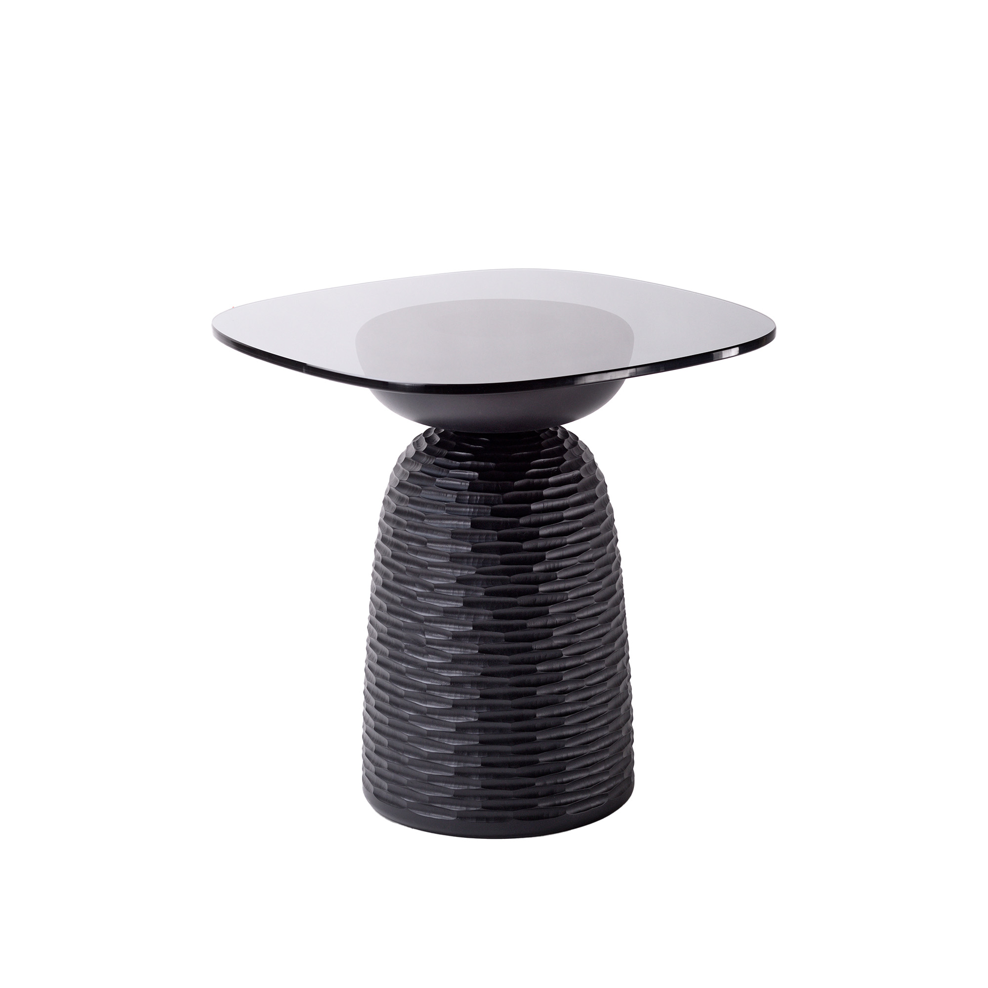 Zanat - Nera Table, High, Full base carved, Cuts, Svartbetsad lönn - Sidobord - Monica Förster - Svart - Trä