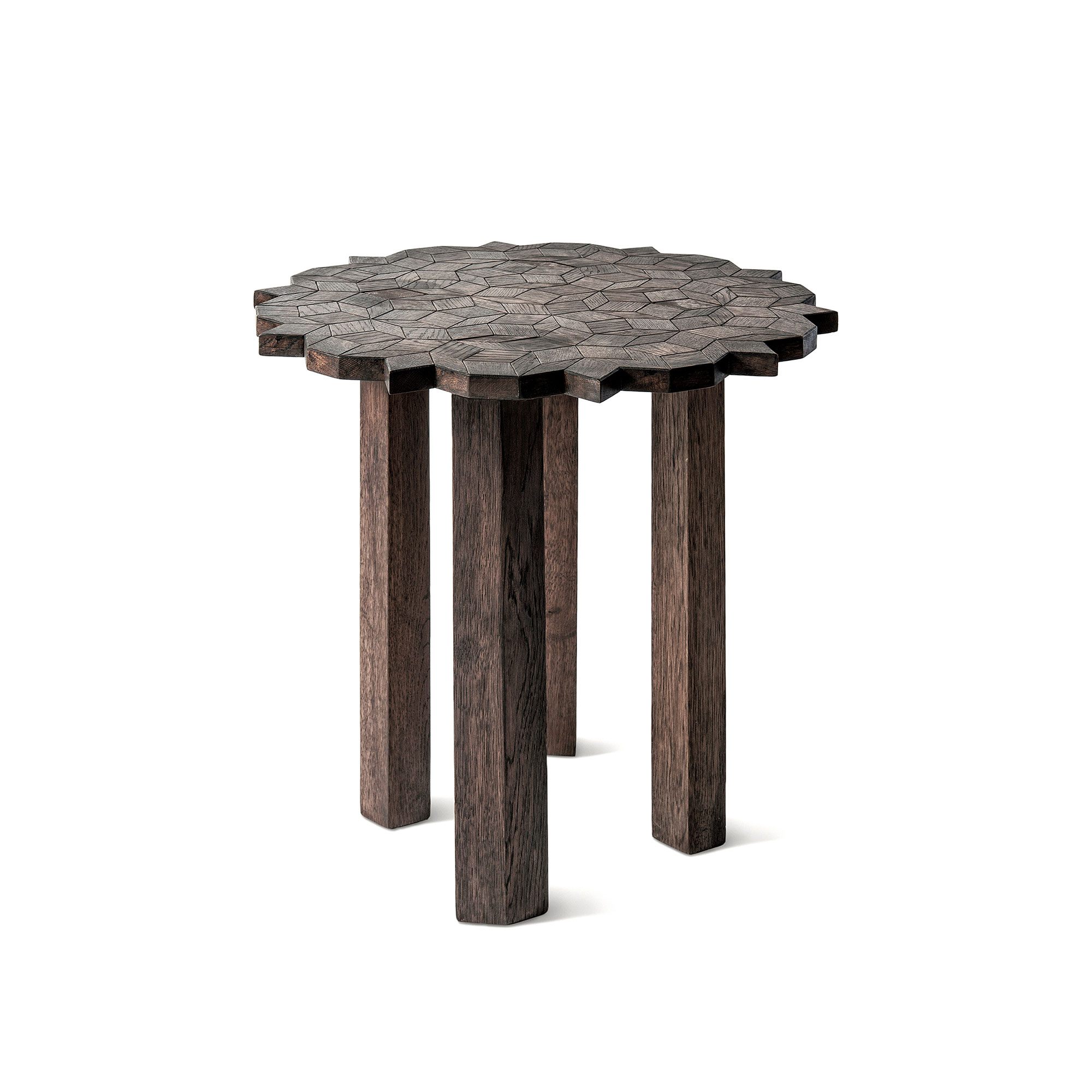 Sidobordet Ombra från det bosniska företaget Zanat, designat av Jasna Mujkic, utmärker sig med sin distinkta personlighet. Detta möbelstycke har en cirkulär bordsskiva prydd med en kant som växlar mellan spetsiga och mjukt rundade segment, vilket resulterar i en unik träkonstruktion. De fyra benen på bordet är formade som romber, vilket bidrar till dess sammanhängande estetik. Ombra Side Table erbjuds i ett urval av åtta olika varianter och är tillgänglig i fyra träsorter.Under 2012 erhöll Ombra-serien från Zanat utmärkelsen Interior Innovation Award tack vare dess originella design, som innefattar små rombiska träelement som samverkar för att skapa ett dekorativt mönster. Varje exemplar av bordet är unikt, med träets ådringar som sträcker sig i olika riktningar från de rombiska bitarna. Bordet är också enastående ur ett miljöperspektiv, eftersom det är tillverkat av massivt trä och utnyttjar träbitar som annars skulle kunna bli överblivet material från produktionen.