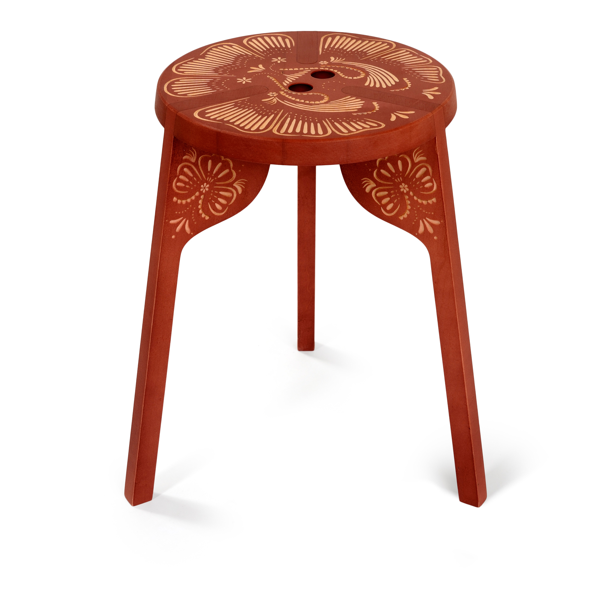 Tattoo Stool Folk är en mönstrad pall från Zanat, formgiven av den berömda arkitekten Gert Wingårdh och Sara Heldner. Den trebenta pallen har ett handsnidat folkmönster på sitsen och den övre delen på benen. Pallen finns att få i flera olika utföranden och ytbehandlingar, där det röda ytbehandlingsalternativet påminner om den klassiska Dalahästen. För ökad bekvämlighet har pallen två små hål i sätet som gör den lättare att hantera.